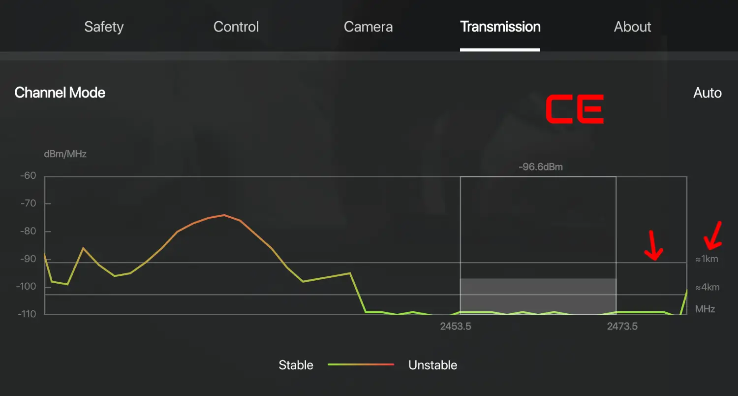 - If it lines up with the 1km mark, your drone is in CE mode.